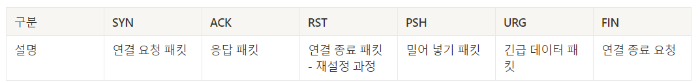 ✨ TCP Flag : 헤더에 포함된 6개의 컨트롤 플래그로 논리적 연결 설정과 데이터 관리를 위해 사용된다.