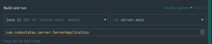 1. 우측 상단 ServerApplication 을 찾아서 클릭한다.