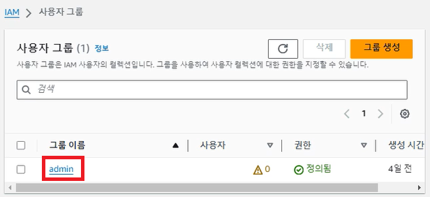 2-1. IAM > 사용자 그룹 에서 그룹 생성 버튼 클릭