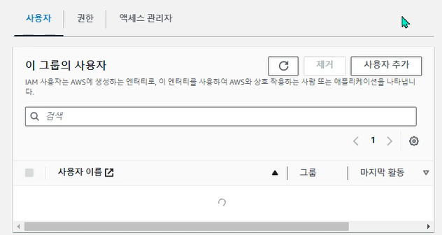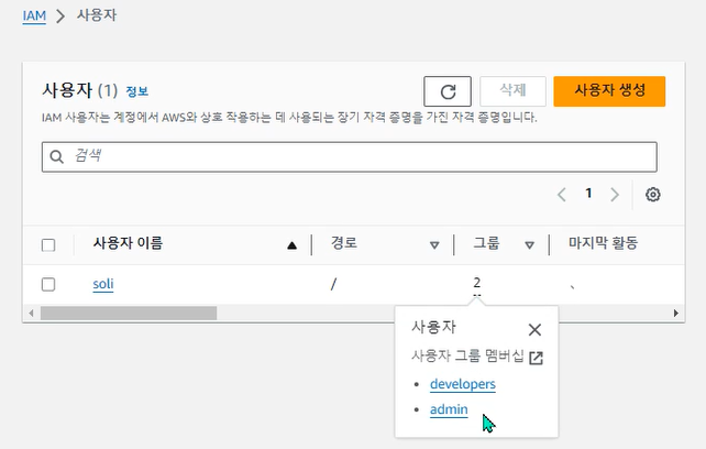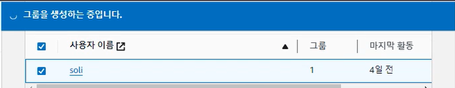 사용자에 가서 그룹을 확인해보면 그룹이 2개 생성되어 있는 것을 확인할 수 있다.