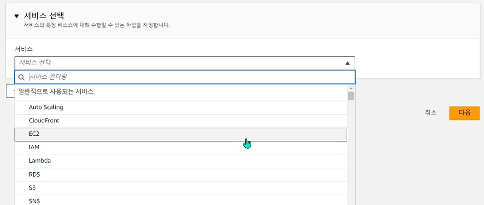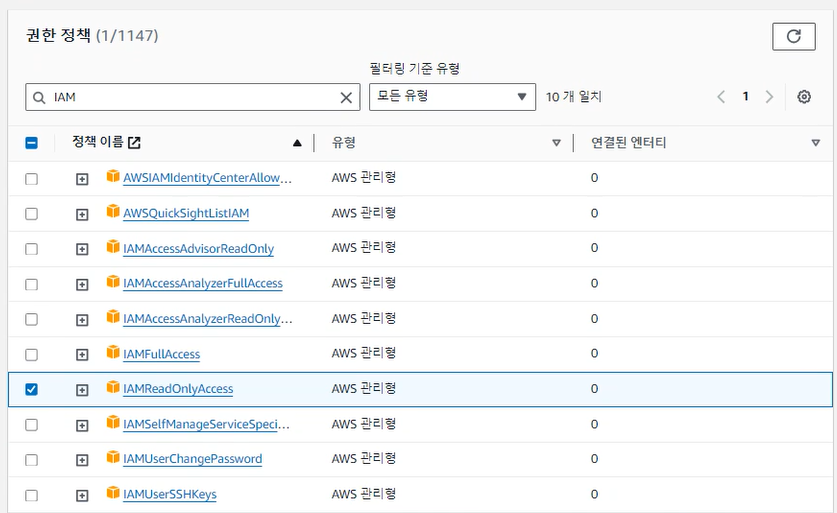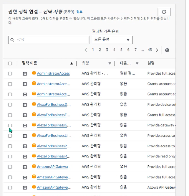 3-3. 원하는 권한 정책들을 선택하고 다음을 눌러 넘어간다.
