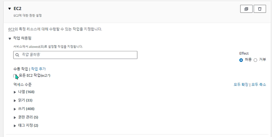 Allow 되거나 Deny될 정책에 대한 작업 또는 API 호출 지정