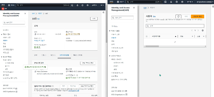 🔻 IAM 사용자 계정과 admin 계정 생성하기