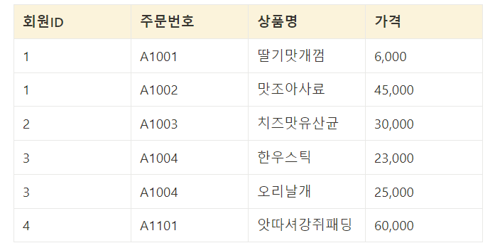 ➡️ 상품명, 가격은 복합키인 (회원ID 와 주문번호)에 완전함수적 종속