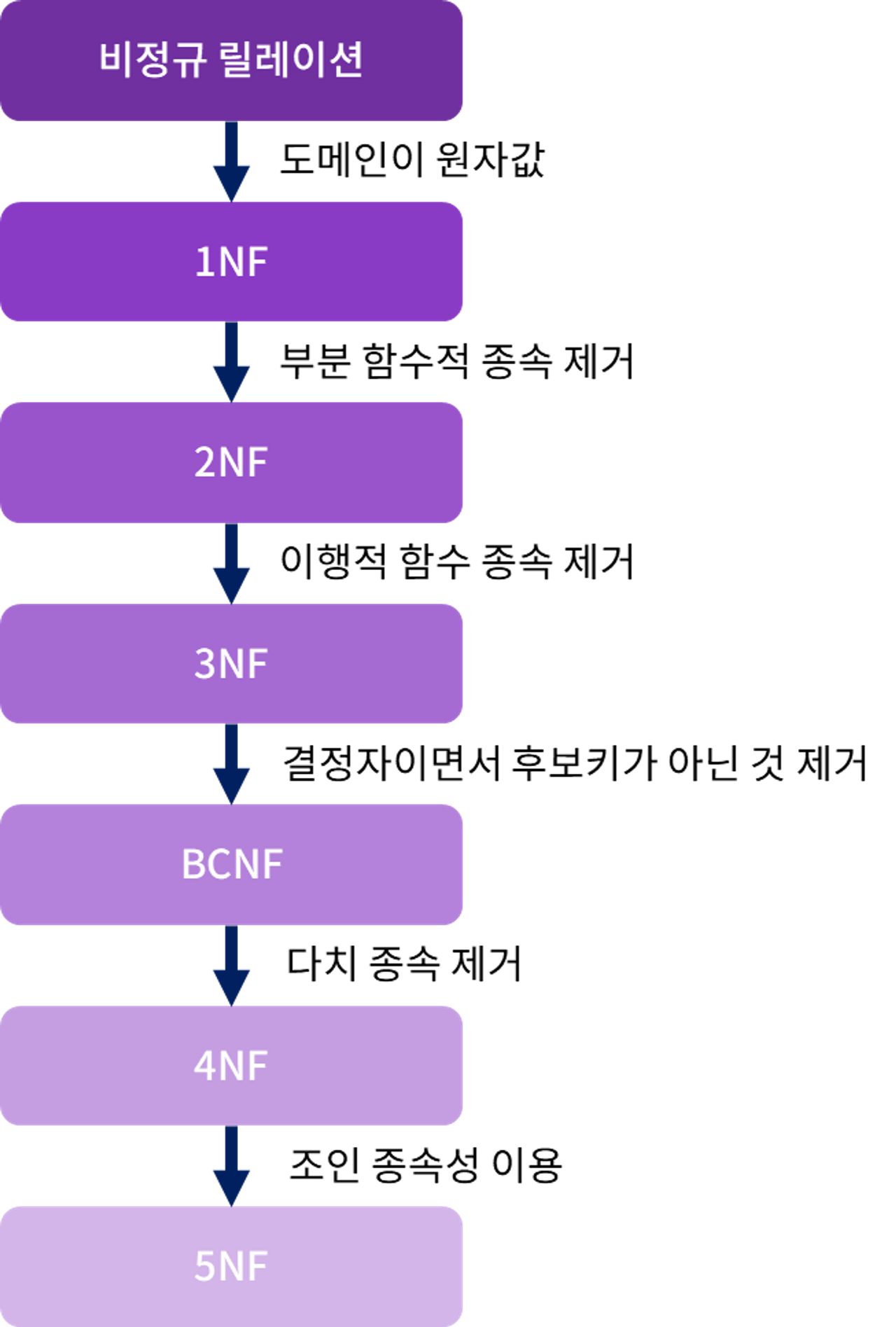 어떤 릴레이션에 속한 모든 도메인이 원자값만으로 되어 있다.