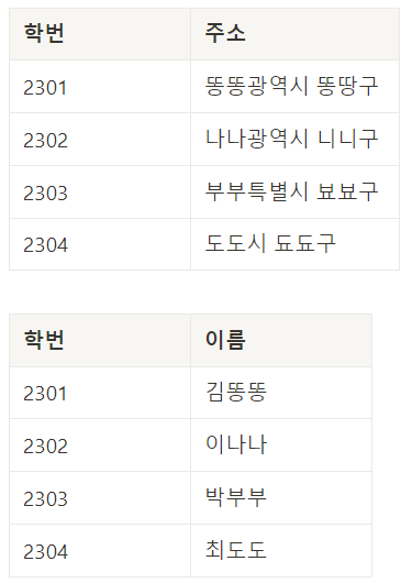 학번을 알면 학생의 주민번호를 알 수 있고 학생의 주민번호를 알면 이름을 알 수 있다. 학번과 주민번호를 하나의 릴레이션으로 구성한다.