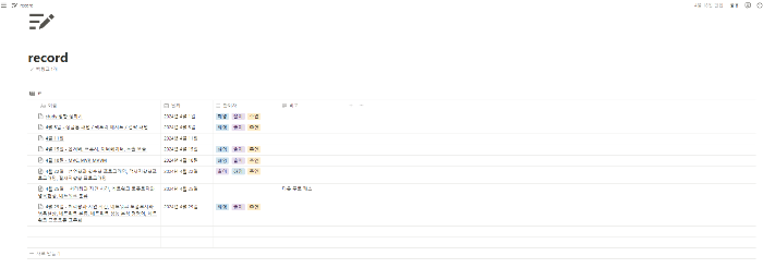 record 페이지는 각 날짜별 스터디 내용을 기록하기 위해 만들었다. 각자 발표 내용, 꼬리질문, 궁금했던 점 등을 기록하는 용도로 사용한다.