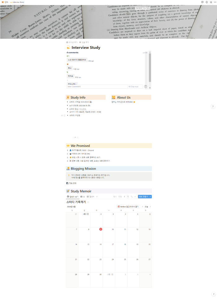 스터디 노션 페이지를 만들어서 팀원들에게 공유하였다.