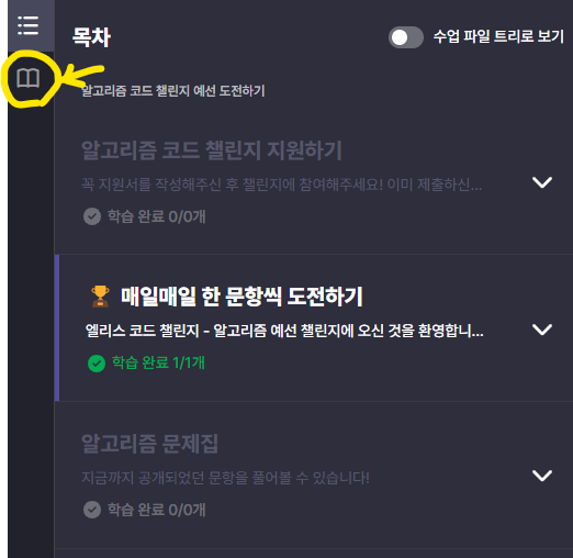💡 문제를 풀 때는 책 모양 버튼을 눌러서 문제를 확인할 수 있다.
