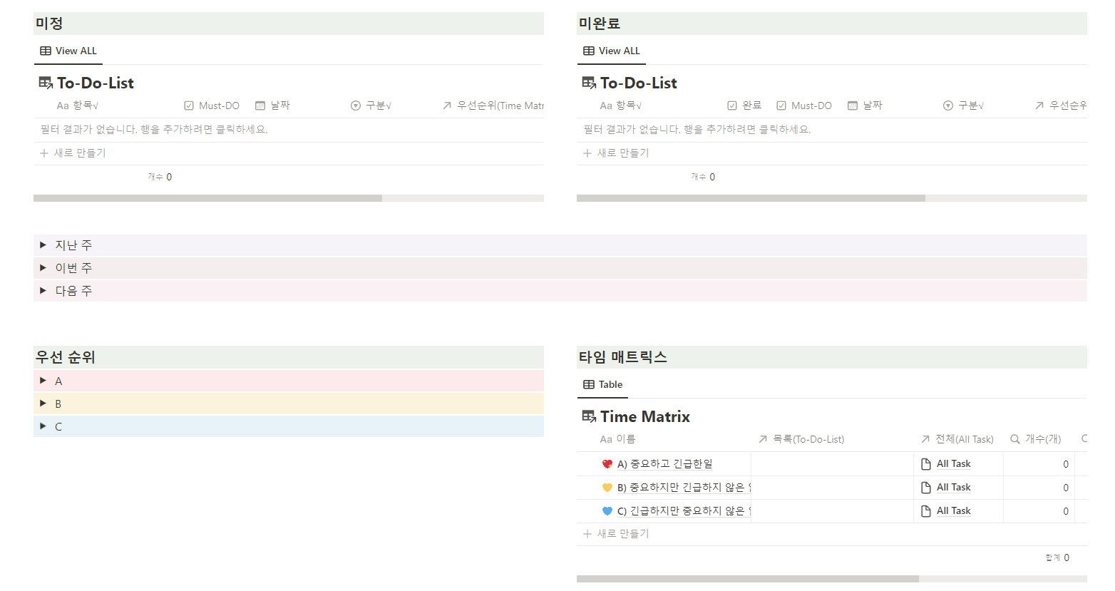 내 노션비서에 있는 우선 순위 정하기 틀과 똑같아서 신기했다.
