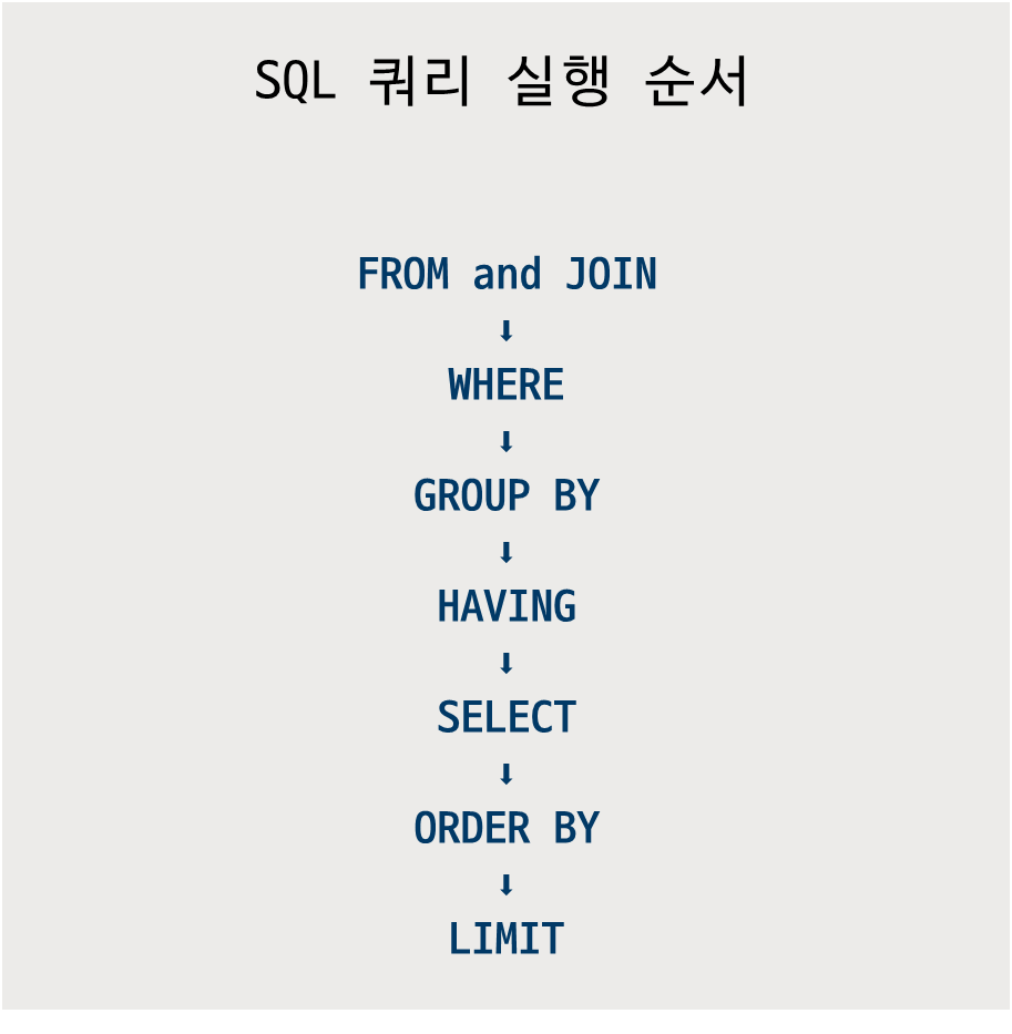 쿼리문을 실행할 때에는 실행 순서가 존재한다. 작성순서가 다르다고 해서 작동이 되지 않는 것은 아니다.