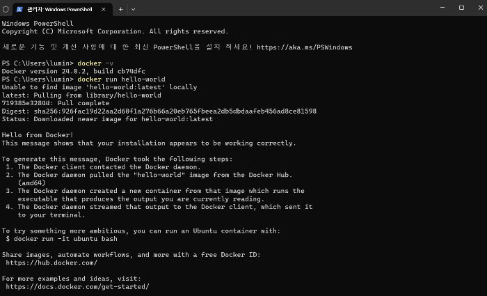 2/ docker에서 hello-world 실행시키기